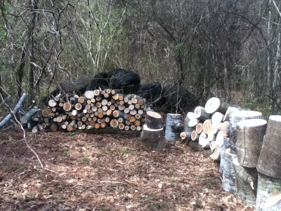 My fiance just bought us 2.5 acres that was completely wooded. I mean….wooded. Keep in mind, we’re getting married in 75 days (!!) and we have LOTS to do. A while ago, people used the land as a dumping ground. Three houses had burned on the property and no one cleaned up the rubble. Yes, we’re having a fun time cleaning all the trash….not.